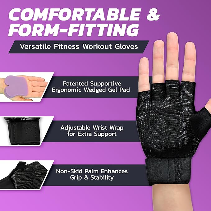 - Unparalleled Stability and Confidence - Featuring a non-skid palm design and an adjustable elastic wrist wrap, our womens workout gloves boost your stability and confidence during workouts. Bid farewell to wrist pain and welcome a more enjoyable exercise with our patented padded gloves!