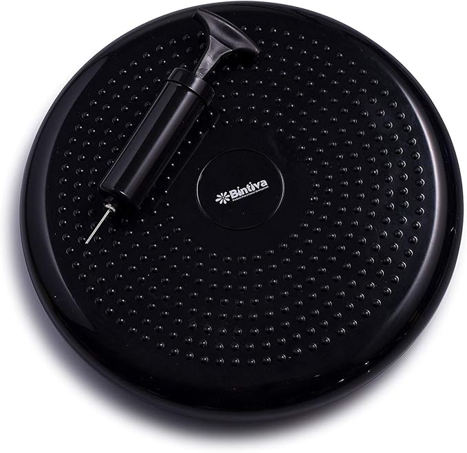- Ships inflated, includes a pump for adjustments. Stability disc size: 13 inches / 33 cm diameter