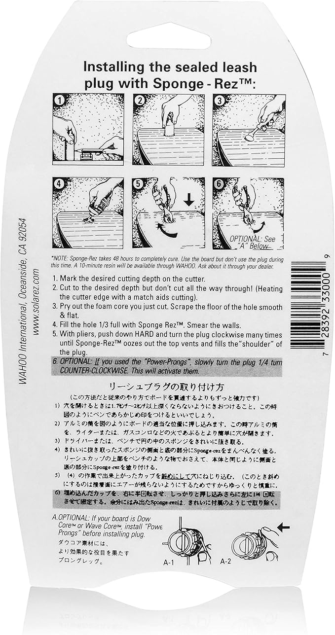 Solarez Wahoo Sponge-REZ Bodyboard Leash Plug KIT ~ Includes Sponge-Rez, for Soft Boards, Sail Boards, ABS-PVC Deck Plugs. Don't Drill a Hole in Your Board! ~ Not for use on EPS! - Made in USA