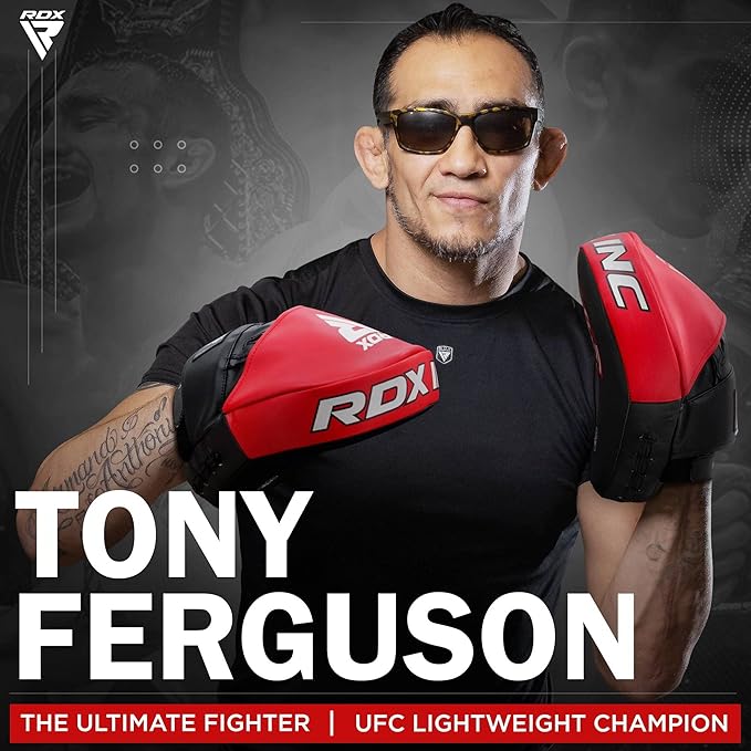 RDX Boxing Pads Focus Mitts, Maya Hide Leather Curved Hook and Jab Target Hand Pads, Great for MMA, Kickboxing, Martial Arts, Muay Thai, Karate Training, Padded Punching, Coaching Strike Shield