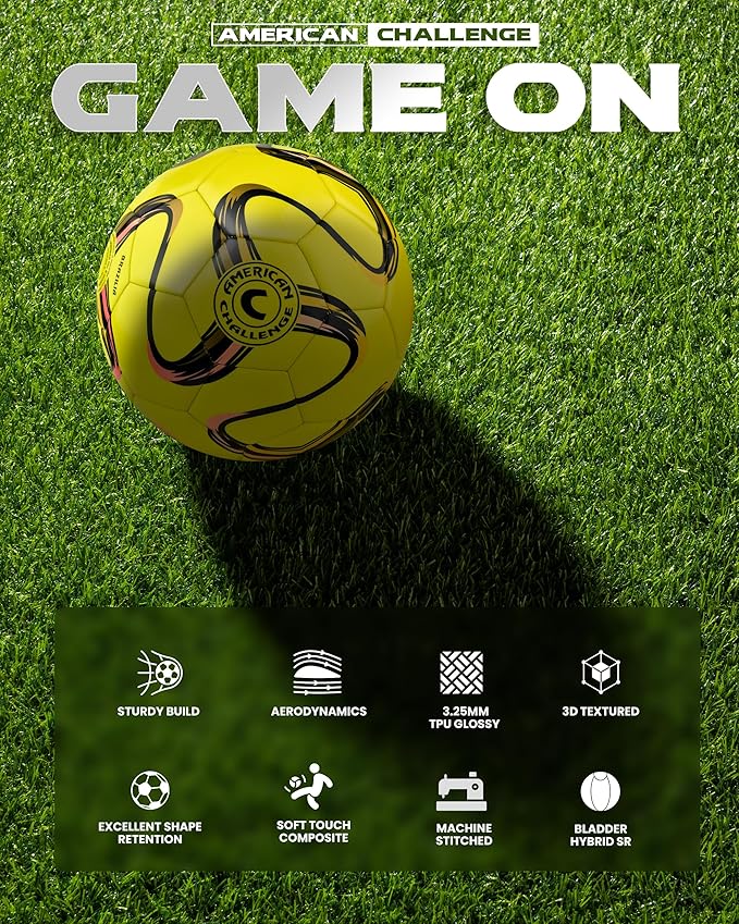 American Challenge Brasilia Soccer Ball – Soccer Ball Size 5, 4, 3 & 2 – for Youth & Adults – Ideal for Practice, Training & Grass Fields