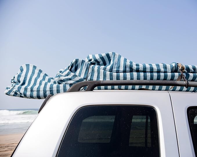 - LIGHTWEIGHT PROTECTION - Surf socks styled cover that protects your surfboard or SUP to and from the beach and prolongs its lifespan. Prevents wax from rubbing on your car's interior. We chose lightly colored material to help prevent your board from getting too hot (over 30° cooler than uncovered surfboards) and from UV discoloration and board delamination over time in the sun.
