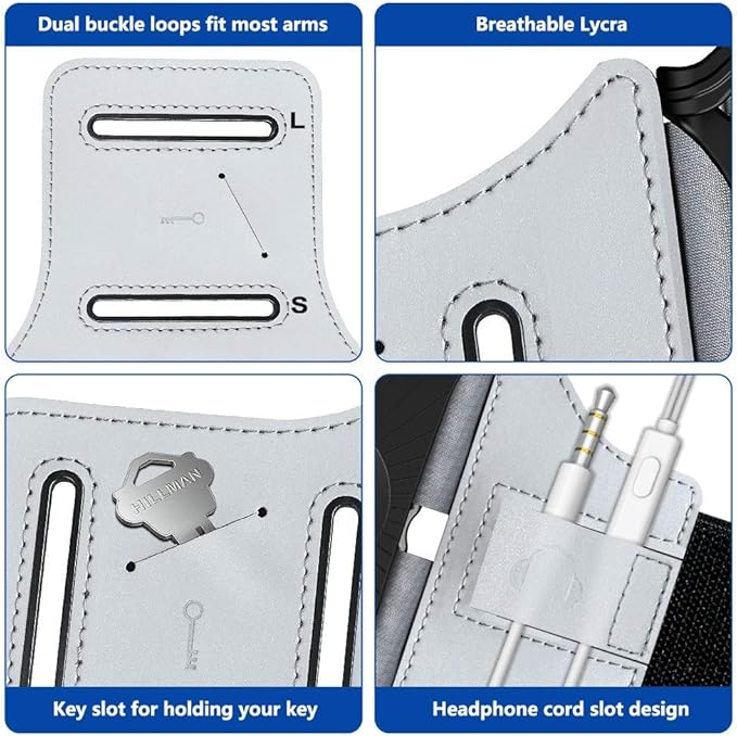 VUP Running Armband 360°Rotatable for iPhone 14/13/Pro Max/Pro/Mini/12/11/SE/Xs/XR/X/8/7/Plus, Fits All 4-6.7 Inch Smartphones, with Key Holder Phone Armband for Running Hiking Biking (Sliver)
