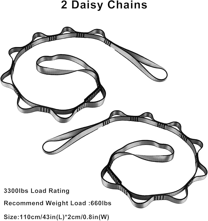 - There are many Aerial Yoga Hammocks on the market, but our Basic Aerial Yoga Hammock is made from Certified Quality Material And Hardware. 1 x 5.5 yards Elastic aerial hammock , 2 x Steel Screw-lock Carabiners (25KN), 2 x 3ft Nylon Reinforced Daisy Chains (23KN).Max rated for 2,059 pound dynamic load.