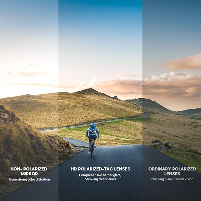 • HIGH-QUALITY TAC & PC MATERIAL: All Lens are made of high quality shatterproof TAC material that is robust enough for prolonged wearing. Lightweight PC frame design is ideal for motorcycle; cycling; bicycle; driving; running; fishing; racing; skiing; climbing; trekking or other outdoor activities, scratch resistant and unbreakable