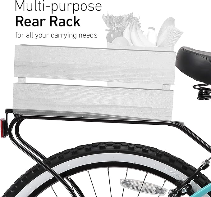 - SLEEK STYLE: These bikes for women feature a stylish, curvy frame with a comfortable foam saddle; hybrid bicycles include a rear rack for optional bike accessories such as baskets and panniers