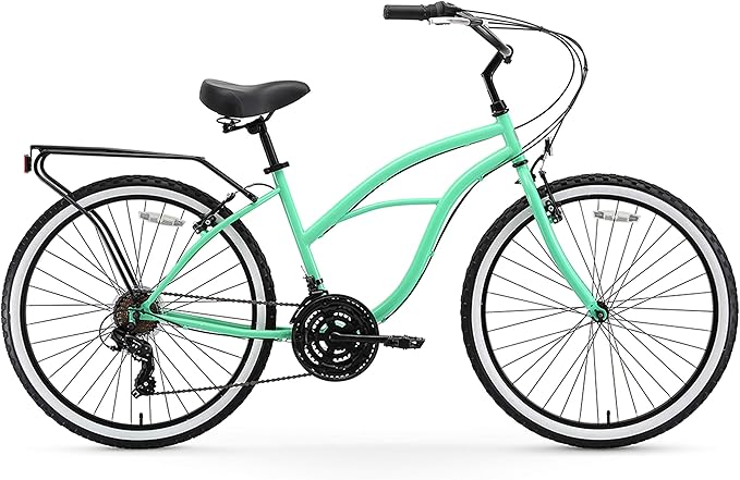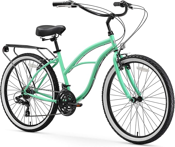 - 21-SPEED DESIGN: Beach cruiser bike features a 21-speed design with an easy-to-use shifter, which is perfect for tackling demanding street, trail, long distance, and uphill riding; women's hybrid bike features front and rear hand brakes to ensure precise stops