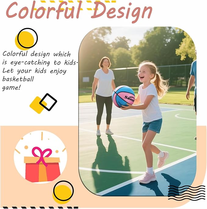 - ★VIBRANT COLORS★ Colorful design, the pink basketball which is eye-catching to kids. It's a excellent gift for children. Christmas gift, Thanksgiving, birthday gift, party, children favorite gift, etc.