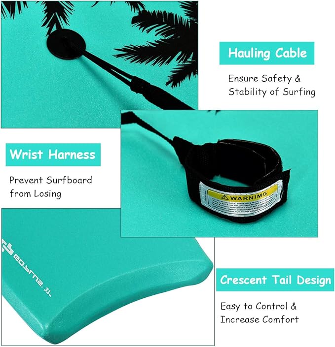 - 【Strong Buoyancy & Light Weight】Strong buoyancy and sturdy construction give our body board a strong load-bearing capacity. It is not easily deformed and faded and can be used for a long time. The light weight makes it easy to carry, so you can take it wherever you go.
