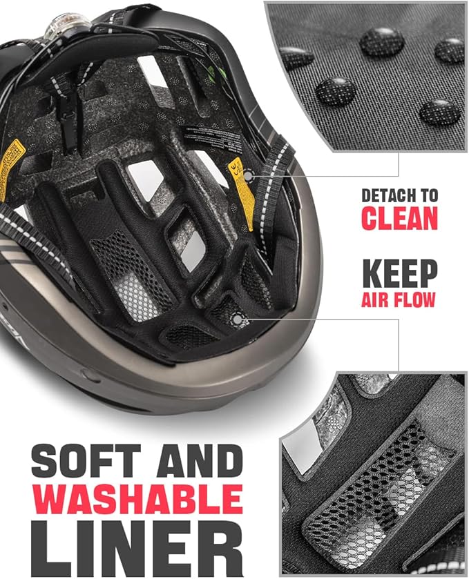 - Bright Helmet Rear Light: Our bike helmet with light in the back, it has 3 flashing mode light- steady, slow flashing and fast flashing. It is necessary to equip taillights for night cycling, it will help riders behind you clearly recognize your direction and warning the car.
