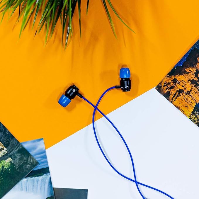 LUDOS Clamor Wired Earbuds in-Ear Headphones, 5 Years Warranty, Earphones with Microphone, Noise Isolating Ear Buds, Memory Foam for iPhone, Samsung, School Students, Kids, Women, Small Ears - Blue