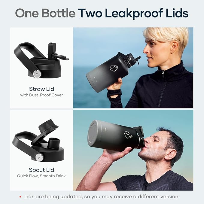 - 2 Caps Pack: This 64 oz stainless steel water bottle comes with straw lid and flex cap, the flex cap is perfect for the beach, camping and hiking, while the straw lid is suitable for cycling and road trip