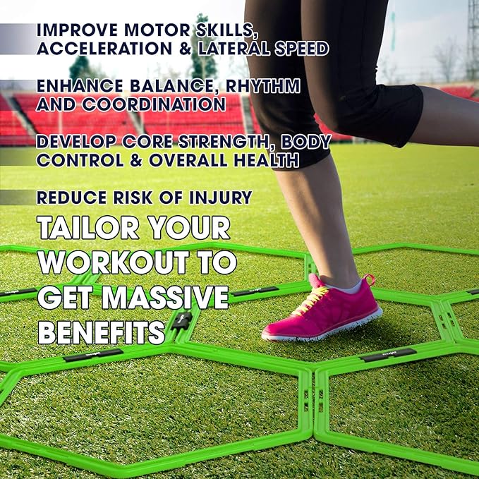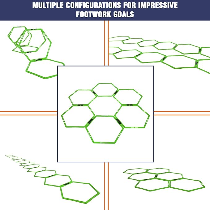 • ULTRA-DURABLE HEXAGONAL SPEED: Heavy-duty plastic agility training equipment is tough enough to handle countless sessions and withstand the inevitable stomps and kicks; Football ladder enhances speed, agility, and footwork.