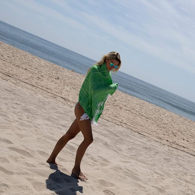 Mosobam 4pc Soft Fouta Peshtemal 35X70, Green-Navy-Charcoal-Coral, Fall Cacala Fleece Blankets, Luxury Sarong, Hamam Towel, Lightweight Outdoor Picnic Blanket Throw, Viscose Made from Bamboo