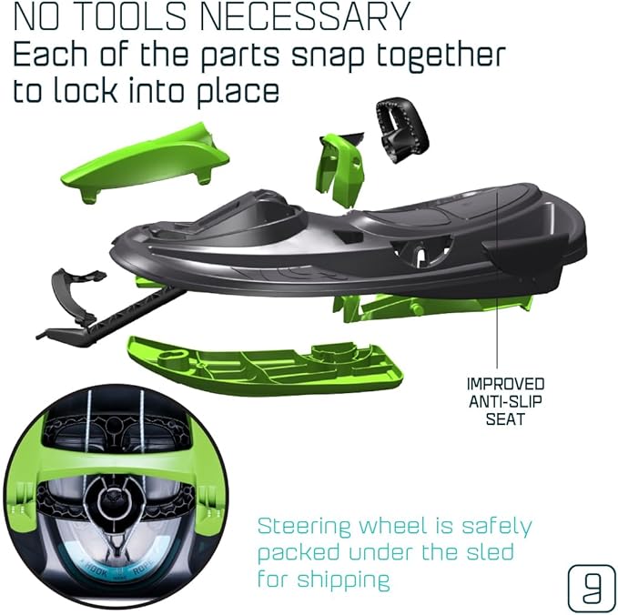 - STEERABLE SLED: The Steering Wheel offers excellent control for enhanced safety, is also connected to a locking differential steering system that provides the Stratos with the ability to maintain high speeds. The Anti-Slip Seat prevents kids from sliding