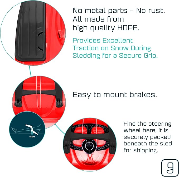 - SNOW SLED WITH BRAKES: A must-have for a safe and exhilarating sledding experience. The innovative design of the Stratos Snow Sled's brake system ensures that riders can easily stop, even on steep slopes