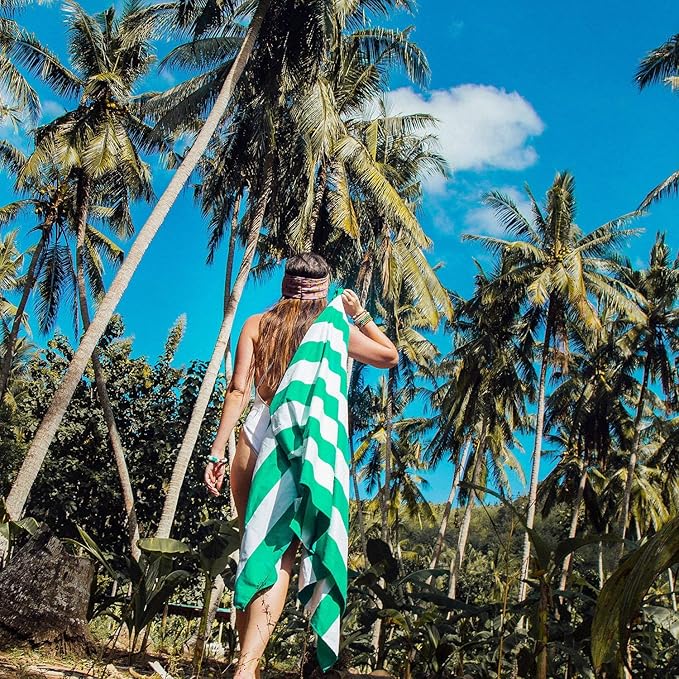 Dock & Bay Beach Towel - Quick Dry, Sand Free - Compact, Lightweight - 100% Recycled - Includes Bag - Cabana - Cancun Green - Large (160x90cm, 63x35)