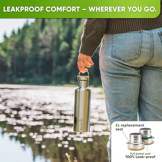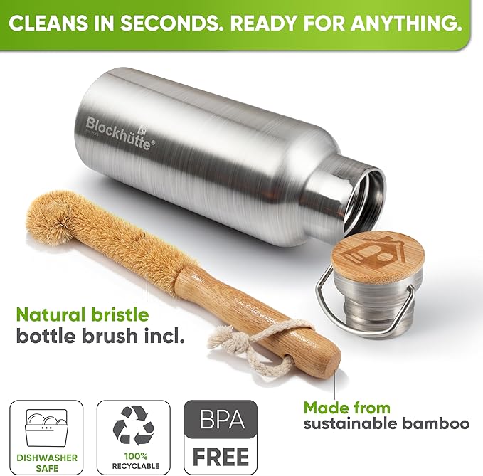 Blockhütte Vacuum Insulated Stainless Steel Water Bottle I 25 oz I Wide Mouth Metal Bottle for hot and cold drinks I BPA-Free I for Travel, School I Kids, Adults, Water Canteen, Sports, flask