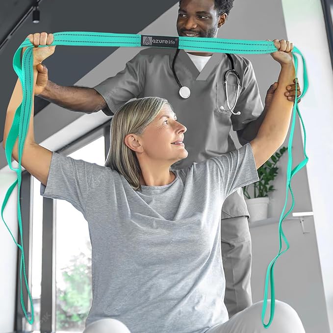 - 【BENEFIT】: Multiple hand-holds along the strap allows for progressive unassisted stretching with greater control. Use this stretch strap to prepare for daily activities, prevent injury, alleviate tightness, increase flexibility and improve range of motion.