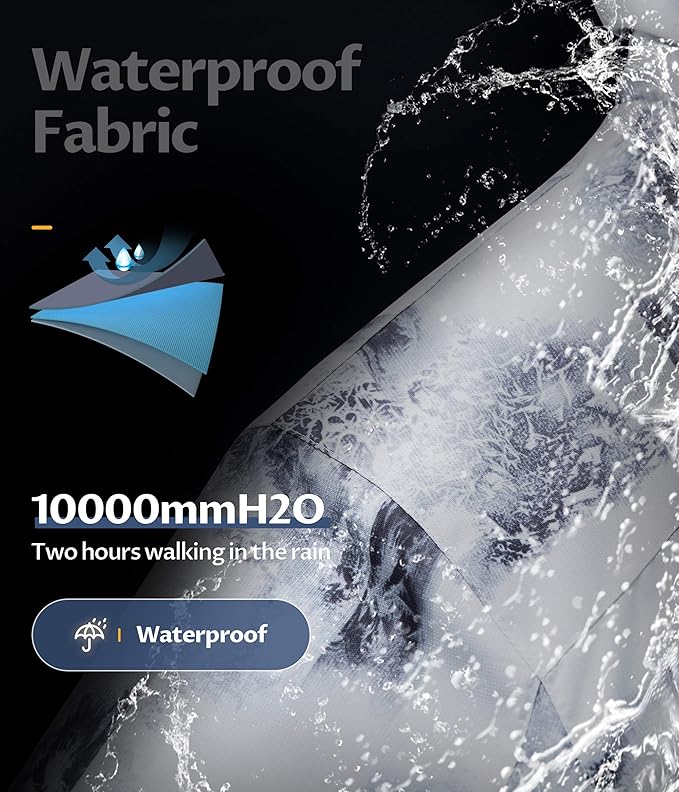 - ❄ Waterproof & Breathable--Men's rain jacket is standard 2-layer shell provides 10000mm/10000g waterproof/breathable protection from the elements.Durable water repellent (DWR) finish sloughs off moisture and wet snow and keep the inside dry, reducing washing times and prolonging service life.