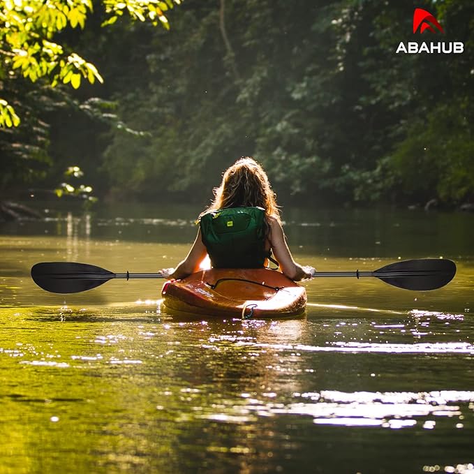 • CARBON DESIGN - LIGHTWEIGHT & DURABLE: Made of premium quality 1.25mm thick, 29mm diameter carbon fiber composite shaft, and fiberglass reinforced polypropylene blades, this kayak paddle is impact and erosion resistent, thus for great durability. It weighs only 33 oz, and is perfect for beginner and intermediate kayakers.
