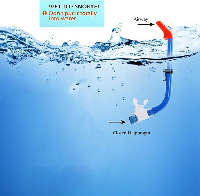 - SEMI-DRY kids snorkeling se: Our Kids Snorkel Set is with semi-dry top to remind the kids not diving too deep into water to insure safety. The purge valve allows for easy clearing and draining water out of the snorkel. NOTE: Please clean sands in the tube carefully before next time use