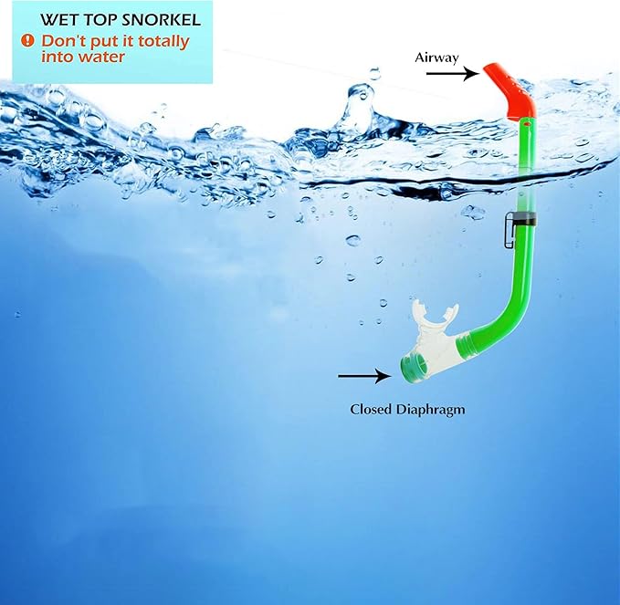 - SEMI-DRY kids snorkeling set: Our Kids Snorkel Set is with semi-dry top to remind the kids not diving too deep into water to insure safety. The purge valve allows for easy clearing and draining water out of the snorkel. NOTE: Please clean sands in the tube carefully before next time use