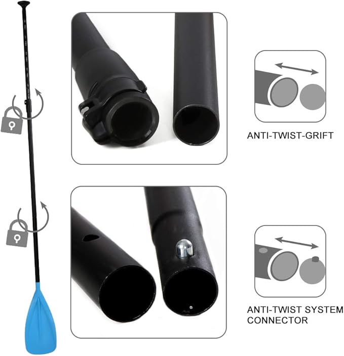 - ADJUSTABLE &LIGHTWEIGHT: It weighs only 1.88 lbs (0.87kg) and can be height adjusted from 65 to 87 inches (1,52 to 2,2 m), which makes it suitable to a very broad range of paddlers from 4' to 6'4" tall (1.22 to 1.92 m). An easy click & go system enables you to share your paddle with friends and family.