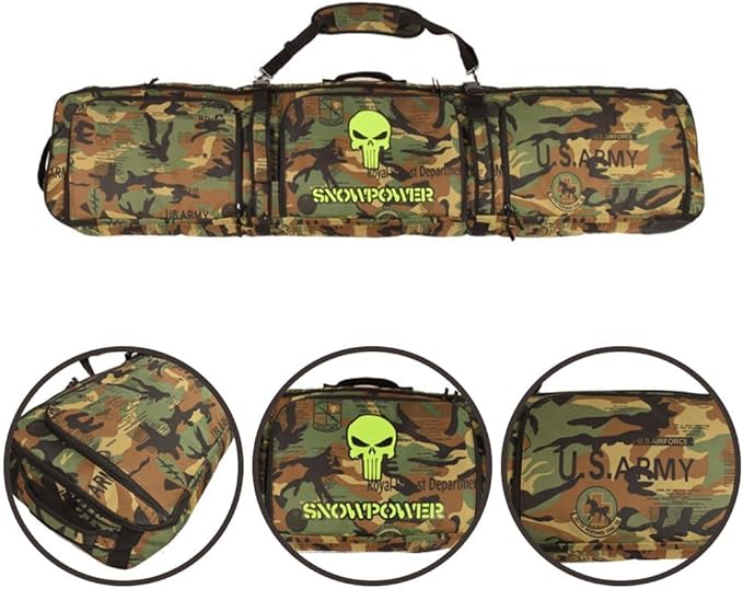 - Design: Great functional Boardbag for boards with binding. Three fixed points, ski single and double board are universal. There is another padded, adjustable and detachable shoulder strap that allows you to hang the bag over a shoulder (like a "rifle").