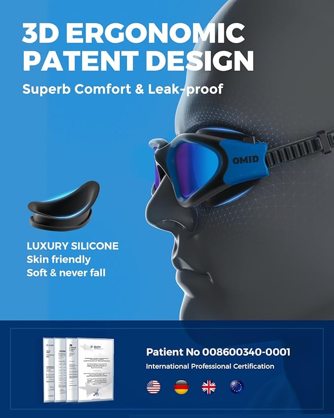 - 【Professional Leak-proof & UV Protection】Our swimming goggles for men designed with Ergonomic 3D frame ensures a perfect fit and never allows water leak in. In order to protect your eyes from irritation. OMID swim goggles are constructed with 111% UV protection to filter out harmful rays, which will bring you worry-free, crystal clear swims every time.