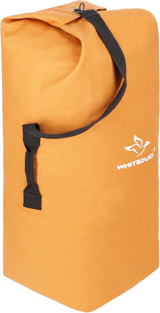 - 【 Heavy Duty Military-Grade Canvas & Top Load Design 】The WHITEDUCK Top Load Canvas Duffel Bag is built with 100% heavyweight cotton canvas for ultimate durability. Designed with a classic military-style top load opening, it offers easy loading/unloading. Includes a snap hook closure and inner storm flap for added security, compatible with small padlocks for secure transport. Ideal for outdoor enthusiasts, travelers, military personnel, and adventurers.