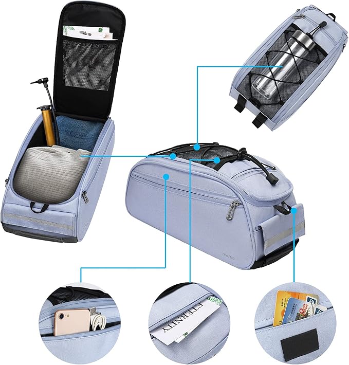 - 4 hook-and-loop fastener straps is stable enough to hold this bike bag on the backseat. Make sure it will not move around even though you're riding on a rugged road.