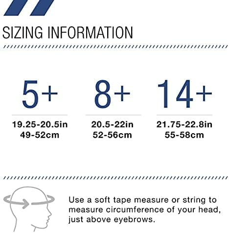 - Find Your Perfect Fit: Fits ages 5 and older. Available in 5+ (49 – 52 cm), 8+ (52 - 56 cm), 14+ (55 - 58 cm), measure head circumference with a string; adjustable chin strap with size release buckle