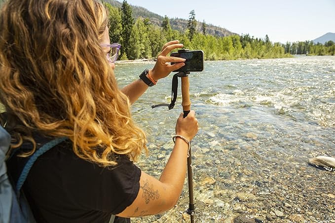 - Accessories - Built-in DSLR universal camera mount which fits most cameras and camcorders. Smart phone mount fits most smart phones, has 2 mounting positions - Photography (vertical) & Selfie (horizontal). V-shaped shooting rest for photography or hunting. Includes snow baskets, sand/ mud baskets, rubber boot tips, rubber tips, trekking pole clip and a carry bag.