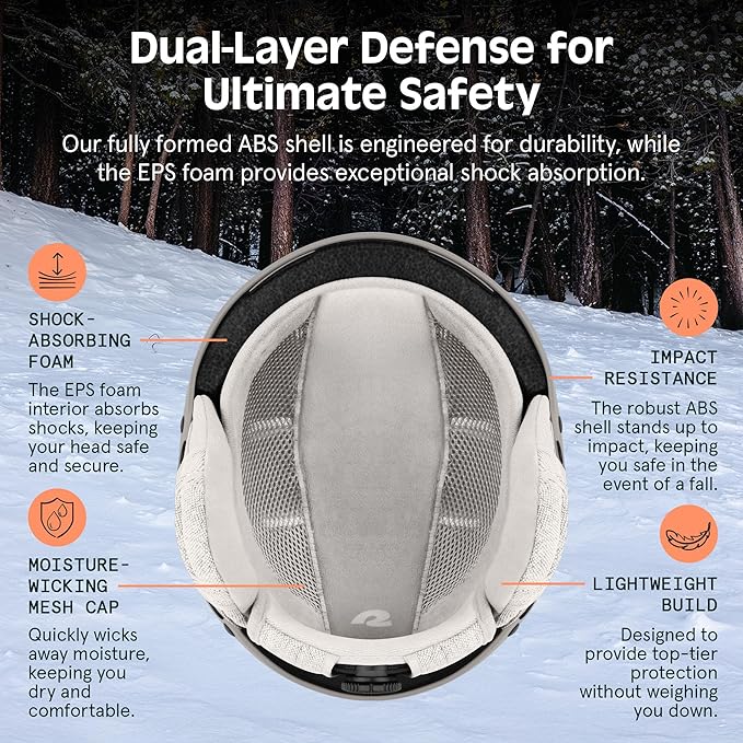 - EXCEPTIONAL SAFETY - Our ski helmet combines safety and comfort, providing top-tier protection for both skiing and snowboarding. Crafted ABS shell and EPS shock-absorbing foam ensures lightweight yet robust protection when you need it.