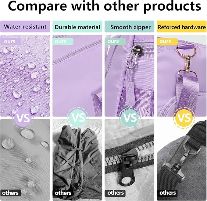 • DRY WET SEPERATED DESIGN & SHOE COMPARTMENT: The high density waterproof pocket can help you to divide wet clothes, towels, shampoo or cold drinks. Built-in shoe compartment keeps your shoe storage private and fresh. Additional storage pockets to organize your items and necessities.