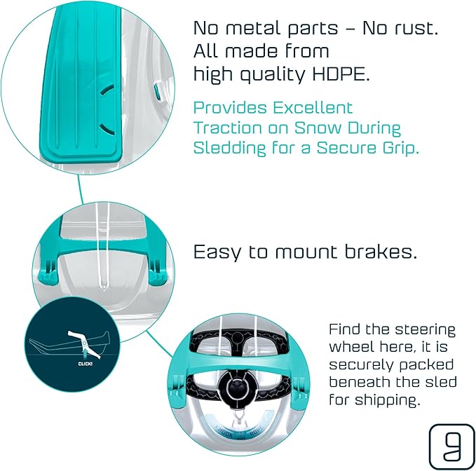 - SNOW SLED WITH BRAKES: A must-have for a safe and exhilarating sledding experience. The innovative design of the Stratos Snow Sled's brake system ensures that riders can easily stop, even on steep slopes