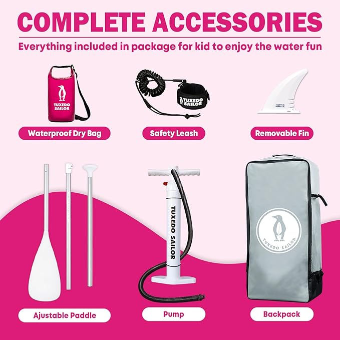 - 【Durable Drop-Stitch Construction】 Built with premium materials, the Tuxedo Sailor paddle board ensures strength, rigidity, and long-lasting use for active young riders.