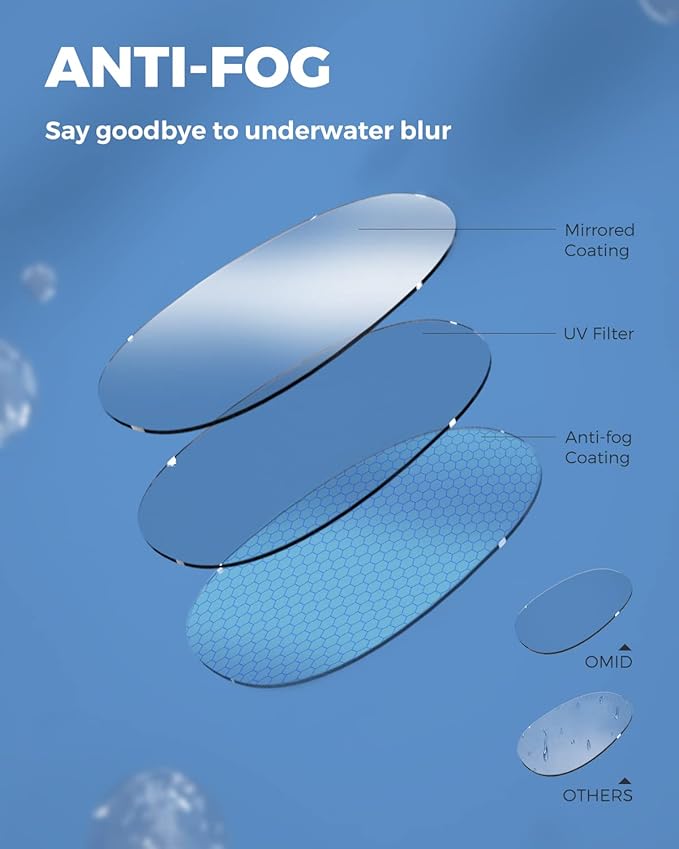 - 3D INTELLIGENT FIT & NO LEAKING : OMID swimming goggles featured super soft flexible seals offer greater flexibility for an even softer and more cushioned fit; Soft frame adapts to the contours of your face for an individual fit and never allowed water leak in, So you can concentrate and enjoy leak free swimming experience