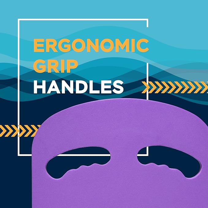 - ERGONOMIC GRIP HANDLES - Featuring two ergonomic grip handle cutouts with grooves for your fingers, this kickboard allows you to hold it with perfect form and master your swimming technique.