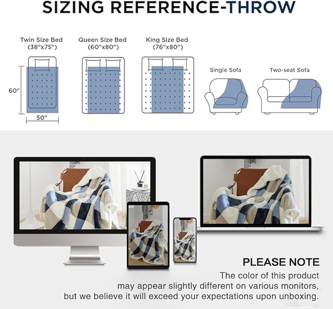 - 【Throw Blanket Size】:Normal size,measures 50"x60". Suitable for indoor and outdoor use, like watching TV on sofa on cold winter days, working as bed sheet to add warmth, reading books on couch, camping, traveling outside and nap in the office, etc.