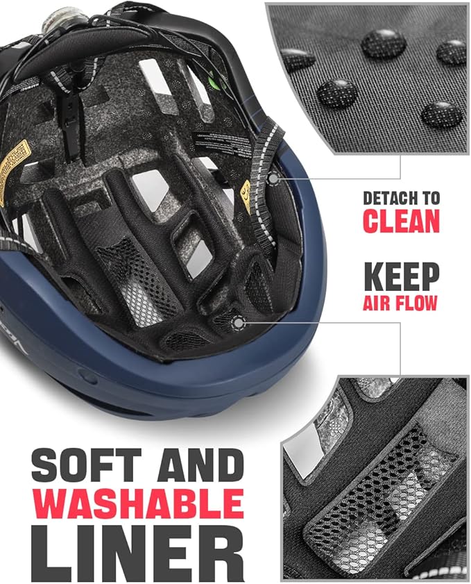 - Bright Helmet Rear Light: Our bike helmet with light in the back, it has 3 flashing mode light- steady, slow flashing and fast flashing. It is necessary to equip taillights for night cycling, it will help riders behind you clearly recognize your direction and warning the car.