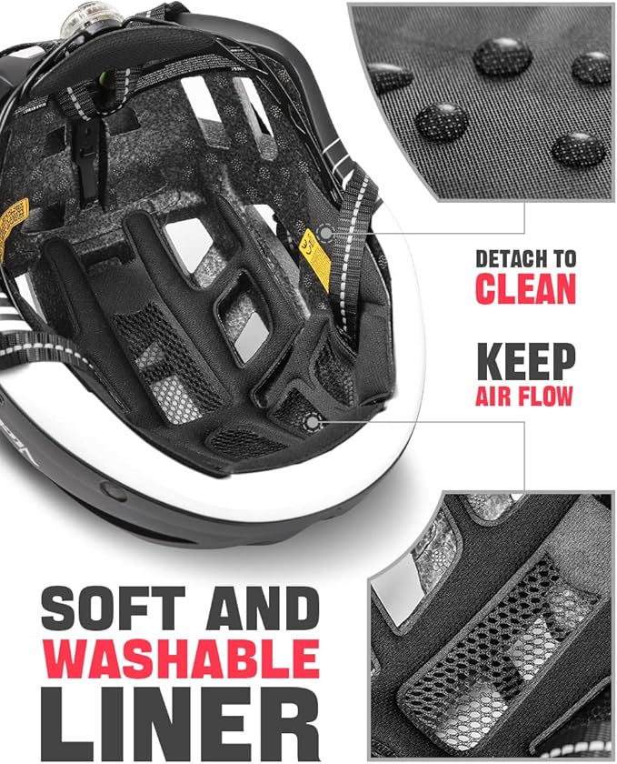 - Bright Helmet Rear Light: Our bike helmet with light in the back, it has 3 flashing mode light- steady, slow flashing and fast flashing. It is necessary to equip taillights for night cycling, it will help riders behind you clearly recognize your direction and warning the car.