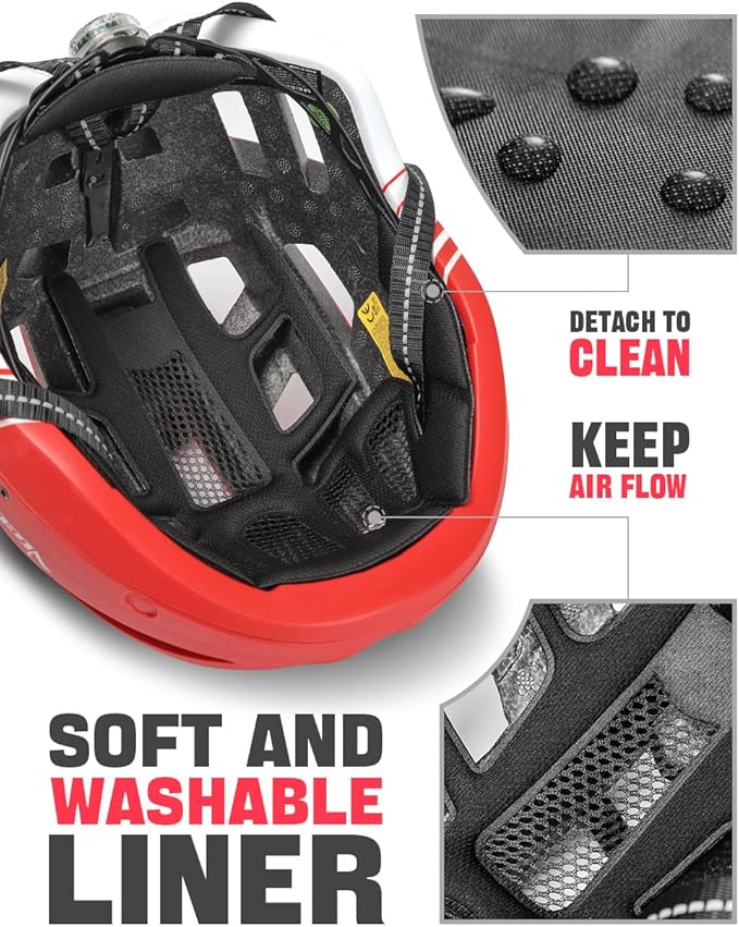 - Bright Helmet Rear Light: Our bike helmet with light in the back, it has 3 flashing mode light- steady, slow flashing and fast flashing. It is necessary to equip taillights for night cycling, it will help riders behind you clearly recognize your direction and warning the car.