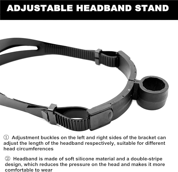 • 【Adjustable stand】 The left and right sides of the stand are equipped with quick adjustment buckles, which can adjust the length of the silicone straps on the left and right sides respectively to adapt to different head circumferences. It is matched with high elastic silicone straps to reduce pressure and increase wearing comfort.