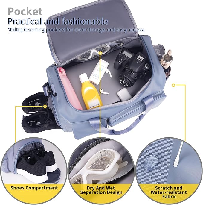 - Wet Pocket & Shoe Compartment: The wet pocket is perfect for storing sweaty clothes or towels after your workout; The shoe compartment allows you to easily store and access your gym shoes without dirtying the main compartment
