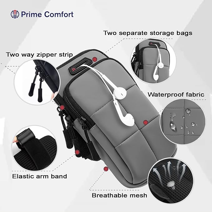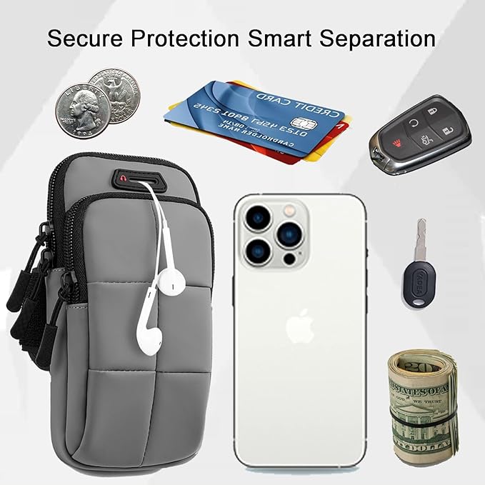 - [Secure Protection]This running armband with double deck and double zipper exercise pouch provides large and safe space for your cellphone as well as your house or car keys, ID/credit cards, cash, earphone, iPod & other accessories whilst doing outdoor activities. Never worry about losing them. Also, headphone and charger cutouts allow convenient access to the phone for hands free and listening music.