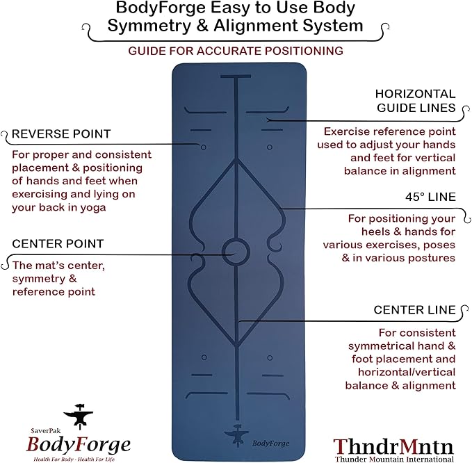 BodyForge Yoga Mat Thick Exercise Mat Thick 8mm TPE Eco-Friendly with Alignment Marks Non-Slip Extra Thick High-Density for Women and Men Workout Pilates