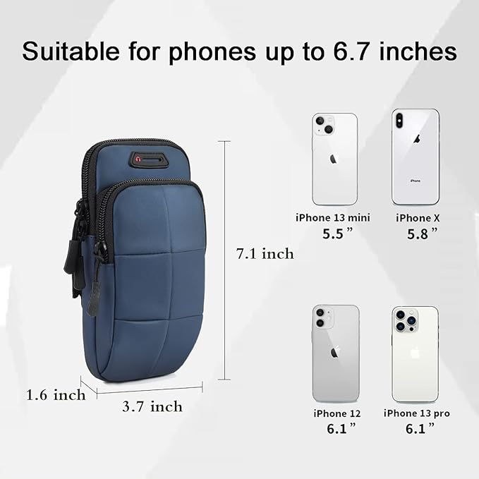- [Universal Size]The arm band is 7.1*3.7 inches, which can fit a cell phone up-to 6.7 inches. Recommended for all iPhone and most Samsung phones.