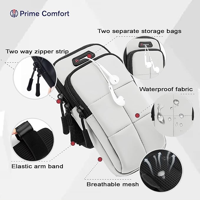 - [Secure Protection]This running armband with double deck and double zipper exercise pouch provides large and safe space for your cellphone as well as your house or car keys, ID/credit cards, cash, earphone, iPod & other accessories whilst doing outdoor activities. Never worry about losing them. Also, headphone and charger cutouts allow convenient access to the phone for hands free and listening music.